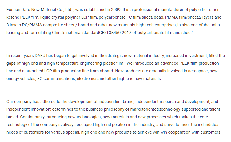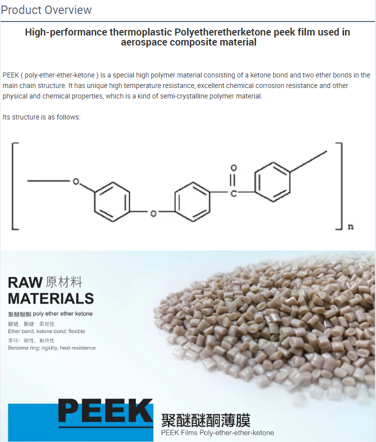 High-performance thermoplastic Polyetheretherketone Amorphous peek film
